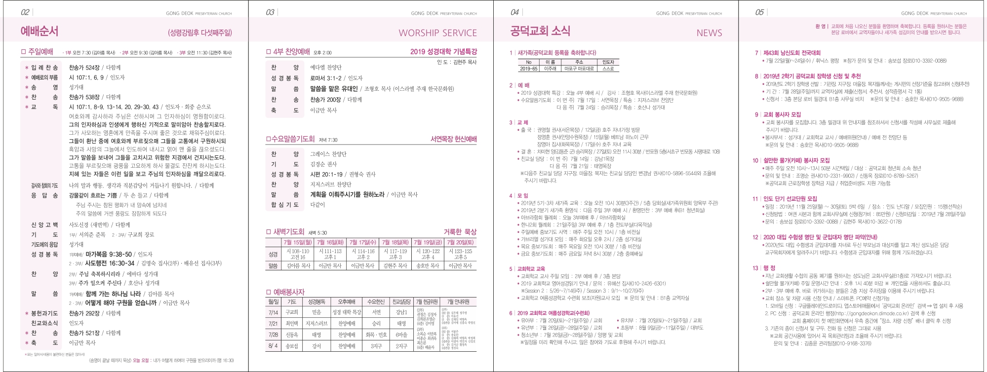29 2019³â 7¿ù 28ÀÏ ÁÖÀÏ (¼º·É°­¸²ÈÄ Àϰö°ÁÖÀÏ) 2019-07-26