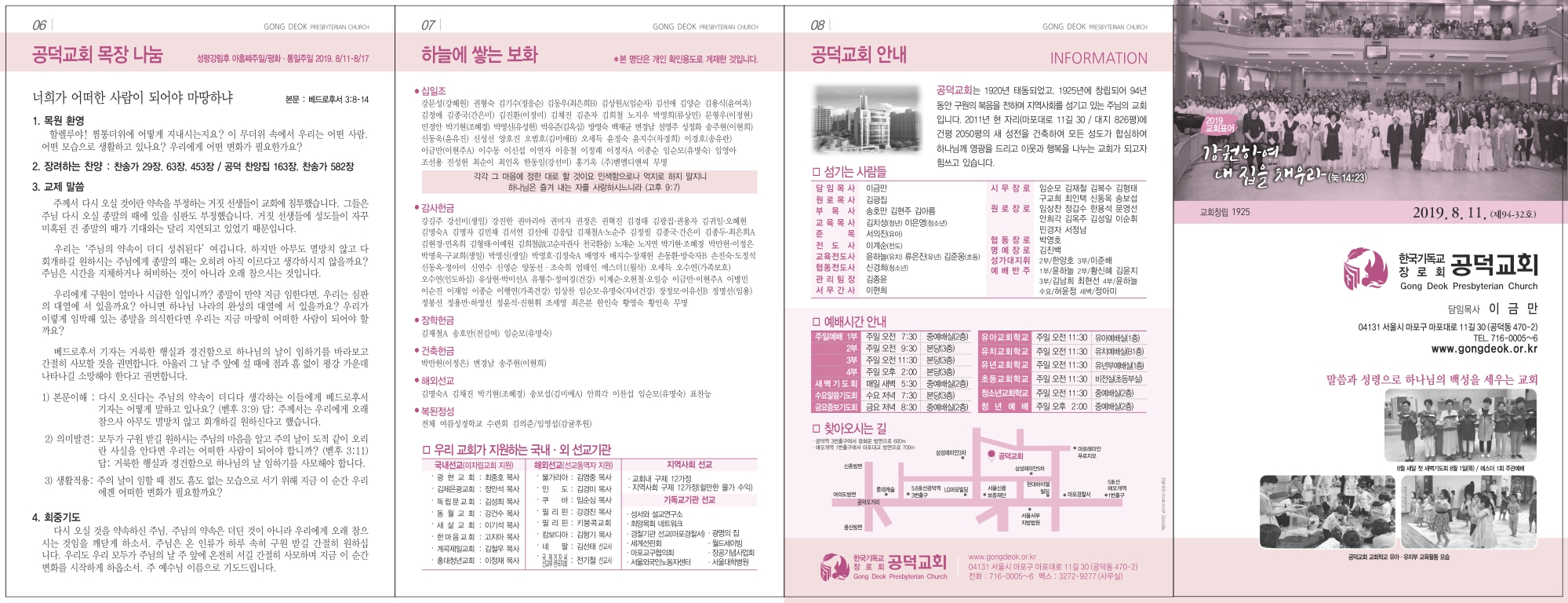 2019³â 8¿ù 11ÀÏ ÁÖÀÏ (¼º·É°¸²ÈÄ ¾ÆÈ©Â°/ÆòÈ¡¤ÅëÀÏÁÖÀÏ)