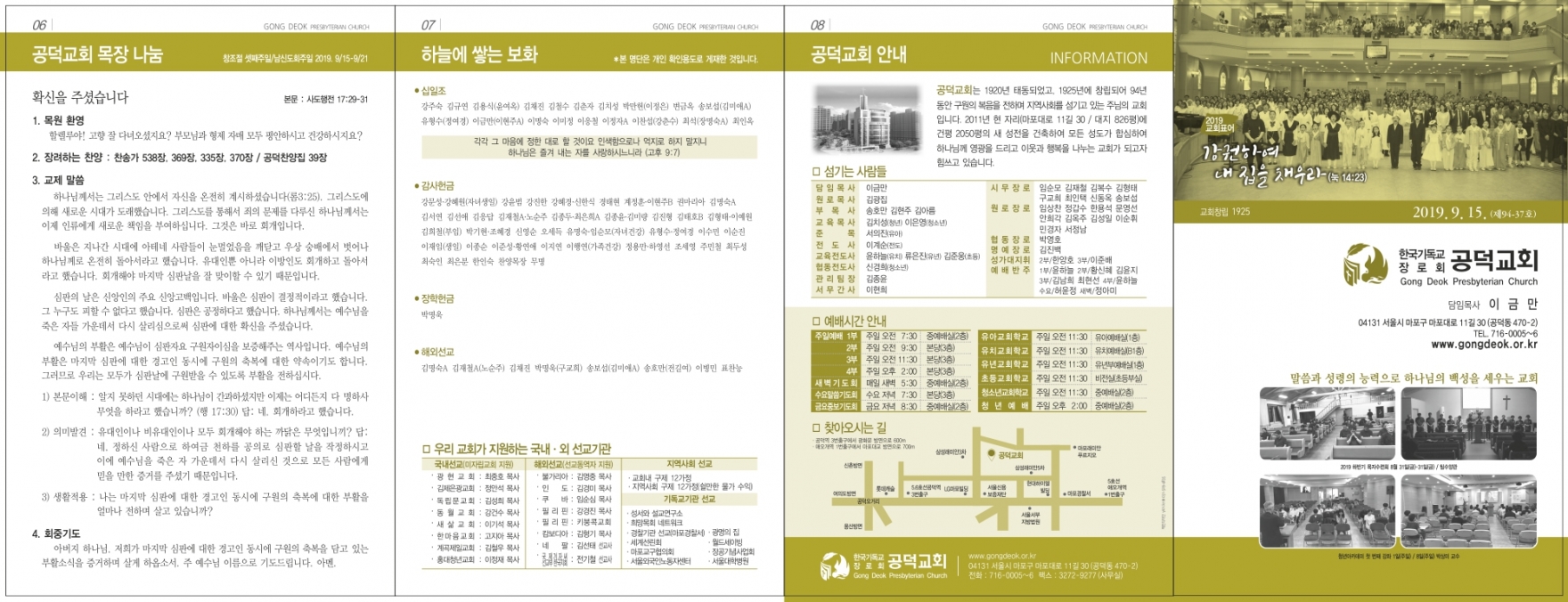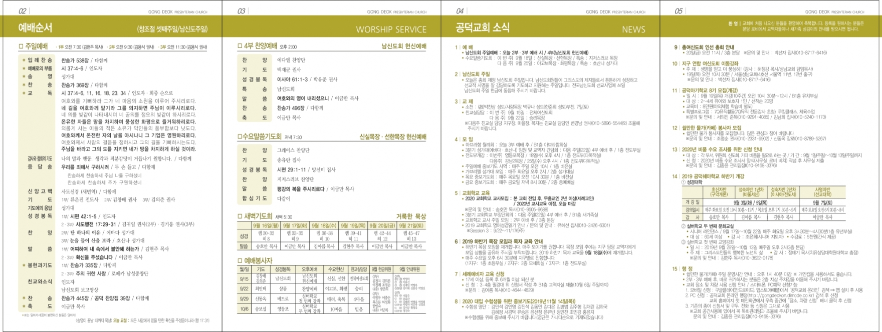 2019³â 9¿ù 15ÀÏ ÁÖÀÏ (âÁ¶Àý ¼Â° ÁÖÀÏ/³²½ÅµµÈ¸ ÁÖÀÏ)